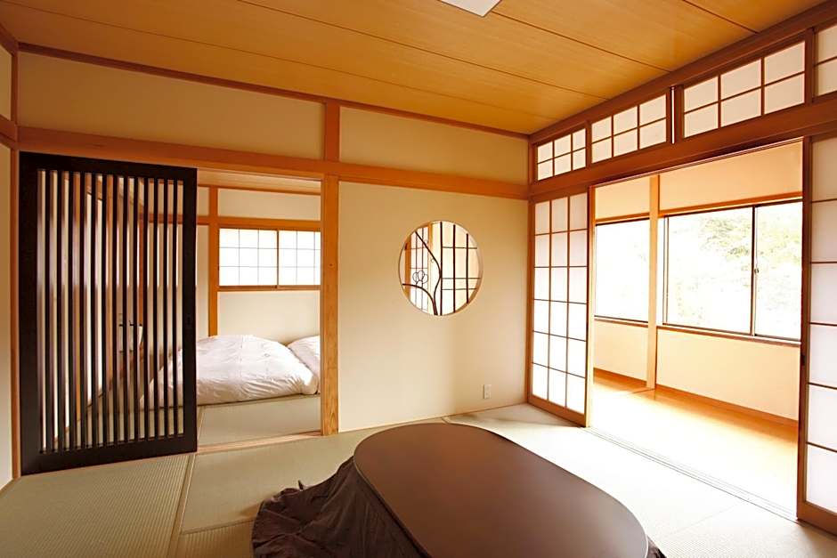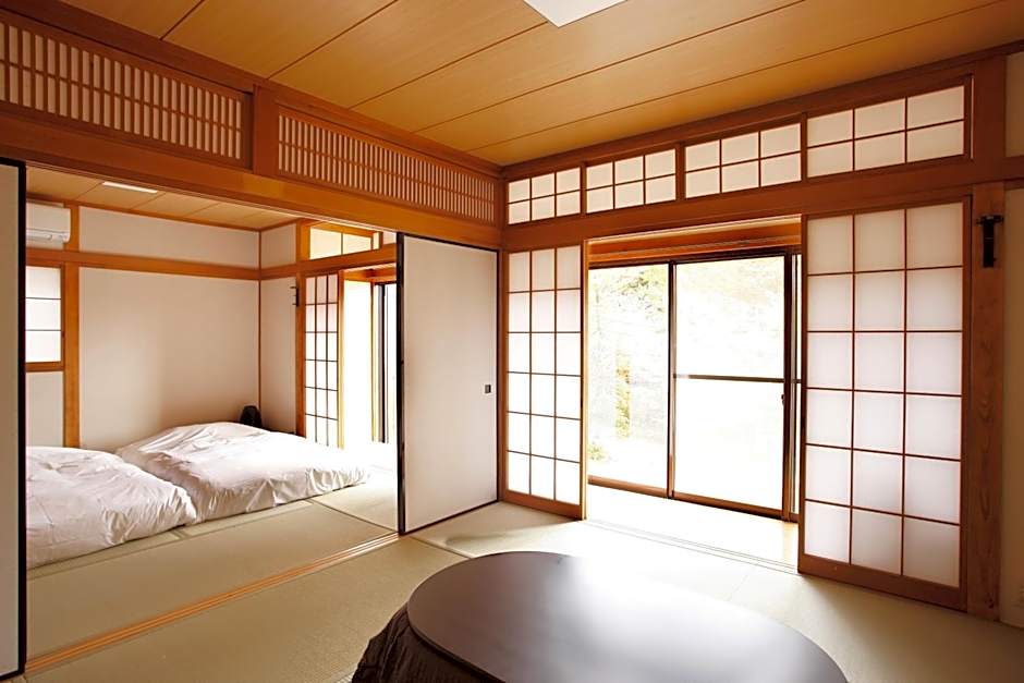 The triple room includes a shared bathroom fitted with a bidet, a hairdryer and slippers. The spacious air-conditioned triple room features a flat-screen TV, tatami, a tea and coffee maker, a wardrobe as well as garden views. The unit has 2 futons.